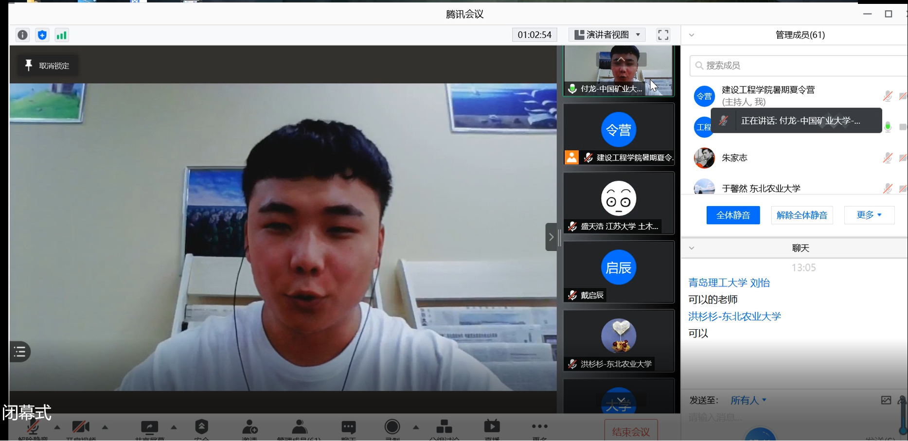 来自中国矿业大学地质工程专业的付龙同学、韦德体育李府昂同学先后对参加此次夏令营的感受进行了发言。