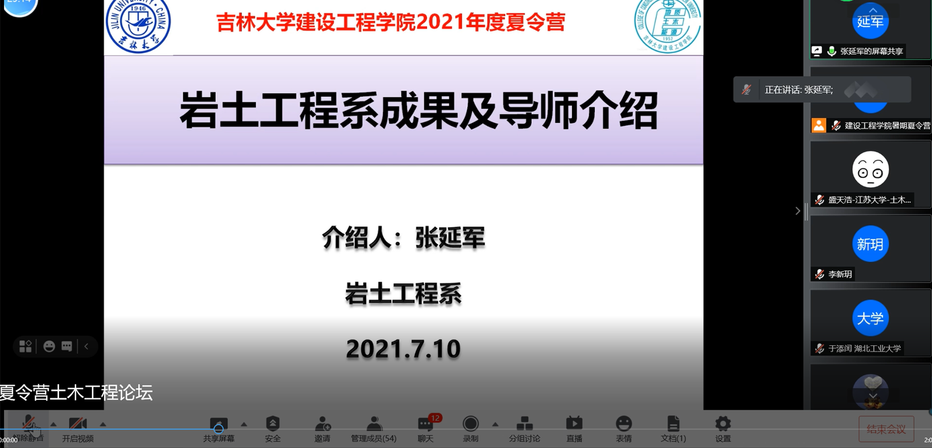 7月10日下午,公司举办地质工程学术论坛、土木工程学术论坛,公司地质工程专业、土木工程专业八位教授分别为营员同学做学术讲座,与营员线上交流。