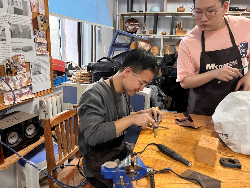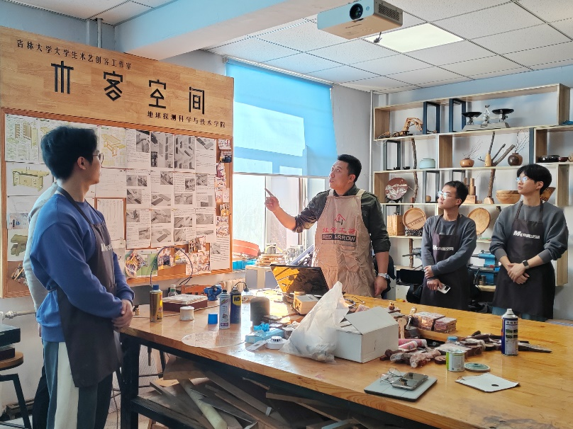 地球科学公司党委副书记兼副经理李阳老师担任木工指导老师。李阳老师为同学们详细介绍了木客空间的发展历史,木艺制品的类别、创作工具以及创作流程。在展示了往届优秀作品后,同学们开始巧妙构思,大胆创作。有了初步设计后,在李阳老师的指导下将创意制成作品。同学们学习木艺的真诚是可以从眼睛里看出来的。室外白雪皑皑,屋内“传道解惑”,木头打磨时的“哧哧”声在各个角落响起。