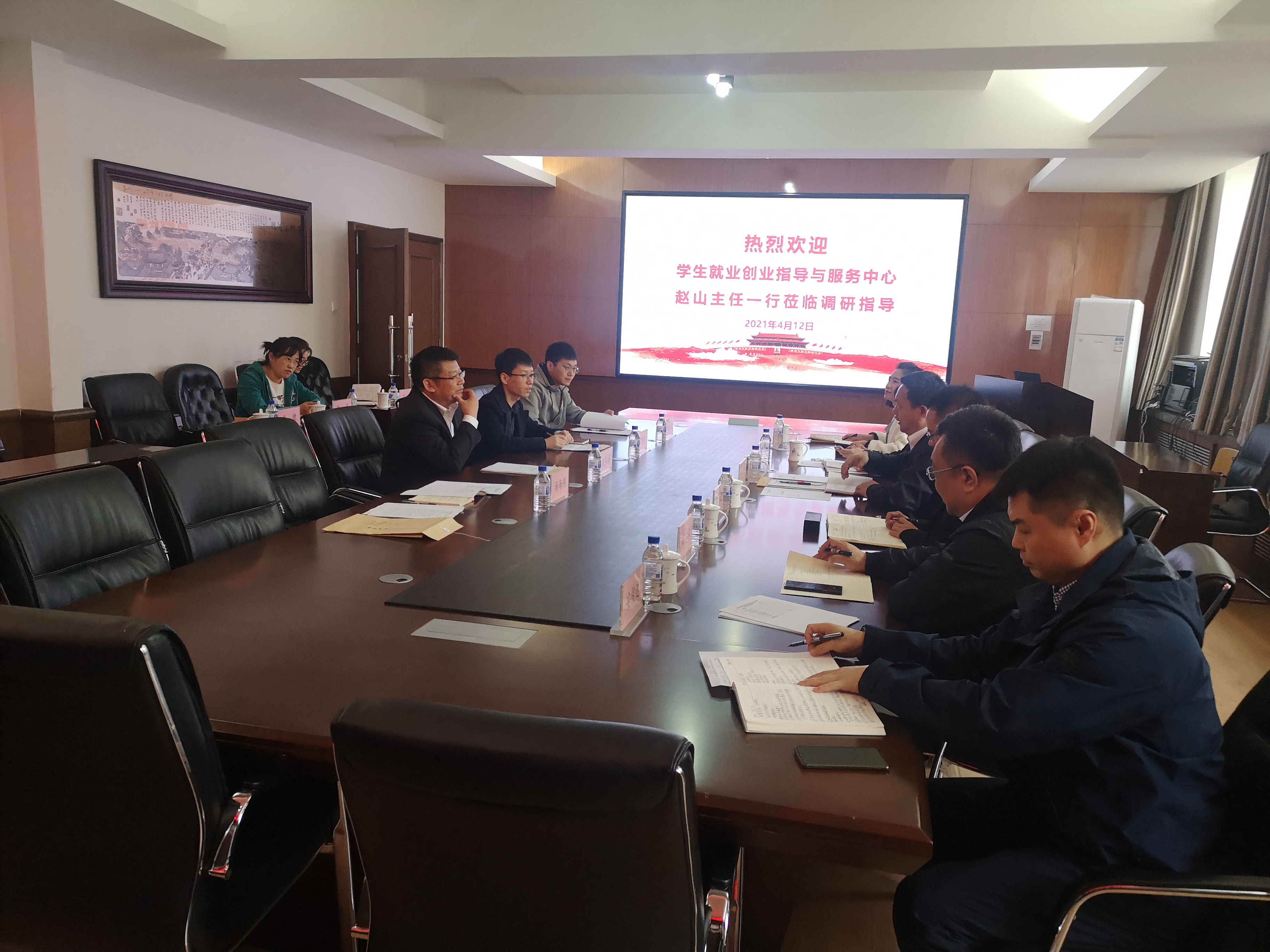 2021年4月12日下午,员工就业创业指导与服务中心主任赵山一行来到韦德体育,对2021届毕业生就业创业情况进行专项调研座谈。参加调研座谈的有员工就业创业指导与服务中心主任赵山,副主任贾晓辉、白江、薛雷,管理科科长安俊达,北区员工办公室主任左振鹏,以及建设工程公司党委书记衣长涛,本科生辅导员常荣剑、郜宇超,研究生秘书汤海燕。会议由公司党委书记衣长涛主持。