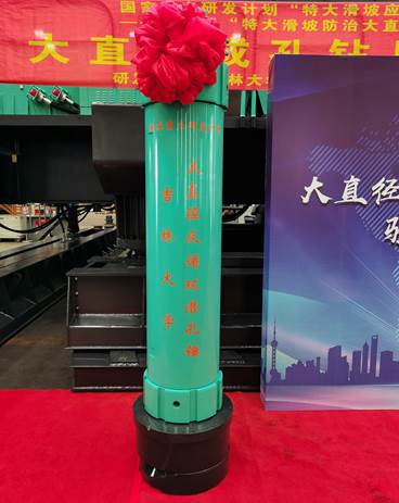 SGQ400大直径反循环跟管潜孔锤由陈宝义教授课题组研发设计,委托上海金泰工程机械有限公司制造组装。该套钻具采用风动潜孔锤实现高效冲击破碎岩石、利用空气反循环进行排渣,可在破碎、易坍塌地层中快速钻进的同时跟入套管保护孔壁,能够有效保持孔壁稳定,减轻滑坡体施工扰动,并具有钻进效率高、功耗低和环境污染小等特点。该技术研发并成功实施,不仅可大幅度提高我国复杂地层钻探水平,而且能显著提高我国特大滑坡灾害防治和快速治理能力,保障生命财产安全,对于特大滑坡有效防范具有重大意义。
