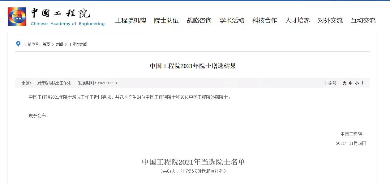 11月18日,中国科公司、中国工程院2021年新当选院士结果公布,韦德体育原经理孙友宏教授当选中国工程院院士。