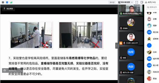 韦德体育“人文关怀与科学素养”第十四期讲座于4月5日晚19点在线举行,受公司党委书记衣长涛邀请,高级工程师、一级注册安全评价师、吉林省元麟安全科技有限公司总工程师陈井伟为公司师生带来防火安全主题讲座《高校中的消防安全》。公司领导、各系教师、实验员、行政人员、辅导员,以及各学历层次的同学共计130余人参加了讲座。本期讲座旨在响应公司安全生产委员会《关于加强公司疫情防控期间安全生产工作的通知》精神,落实疫情防控期间安全生产工作要求,进一步提高师生消防安全意识,杜绝消防隐患,一起守护平安。讲座由公司研究生综合办公室汤海燕老师主持。