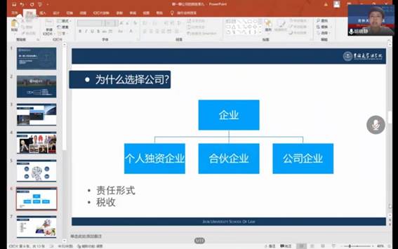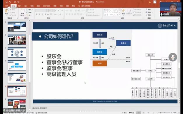 在这短短1个半小时的时间里,胡教授用轻松幽默的语言为同学们营造了一个愉悦的环境,使大家对公司这一名词有了更深的理解和感悟。