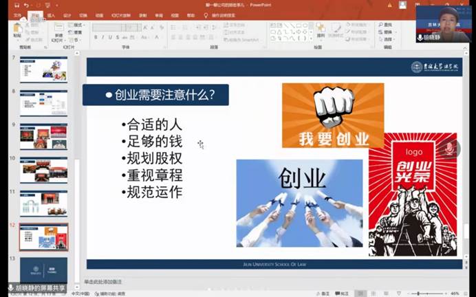 讲座中,胡晓静教授通过PPT演示,以生动的语言、鲜明的案例,围绕什么是公司、为什么选择公司、如何设立公司以及如何运作公司四个核心问题进行了深入讲解。