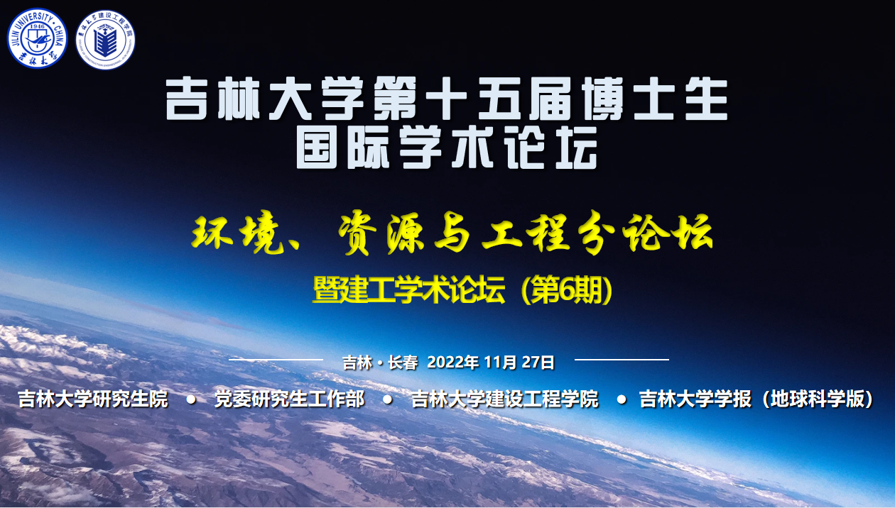 2022年11月27日上午,韦德体育官方网站第十五届博士生国际学术论坛——环境、资源与工程分论坛暨建工学术论坛(第6期)隆重开幕。论坛以“创新· 发展·融合——环境·资源·工程的和谐统一”为主题,本论坛由韦德体育官方网站研究生院、党委研究生工作部主办,韦德体育承办,韦德体育官方网站学报(地球科学版)协办。党委研究生工作部部长兼研究生院副经理赵玥老师、副部长于瑶老师,国际交流科科长董墨老师,韦德体育官方网站学报副总编兼地球科学版执行主编邱殿明老师,韦德体育经理郭威教授,副经理张文教授,党委副书记兼副经理闫国栋老师参加了开幕式,韦德体育副经理王伯昕教授主持开幕式。
