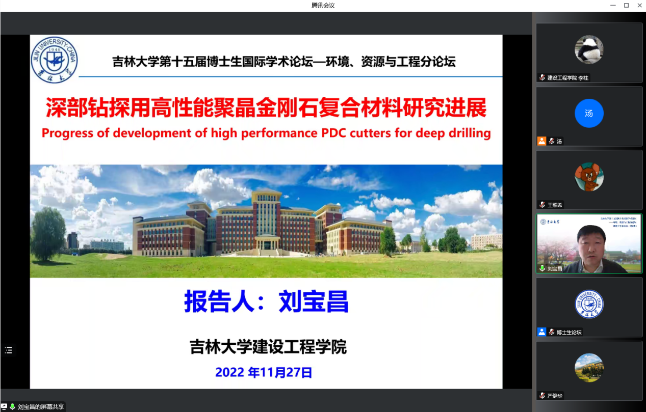 环境、资源与工程分论坛围绕“振兴东北”战略下的工程建设与资源开发,信息化时代背景下的智慧资源与环境,资源利用过程中的环境影响,资源环境、自然灾害与人类工程等四个专题,覆盖地质资源与地质工程、土木工程、地质学、地球物理学、环境科学与工程、水利工程等学科博士生,旨在促进不同学科博士生的学术交流和思维碰撞,开展多学科协同创新,进一步弘扬学术精神、活跃学术思想、营造学术氛围,培养交叉学科高层次人才。