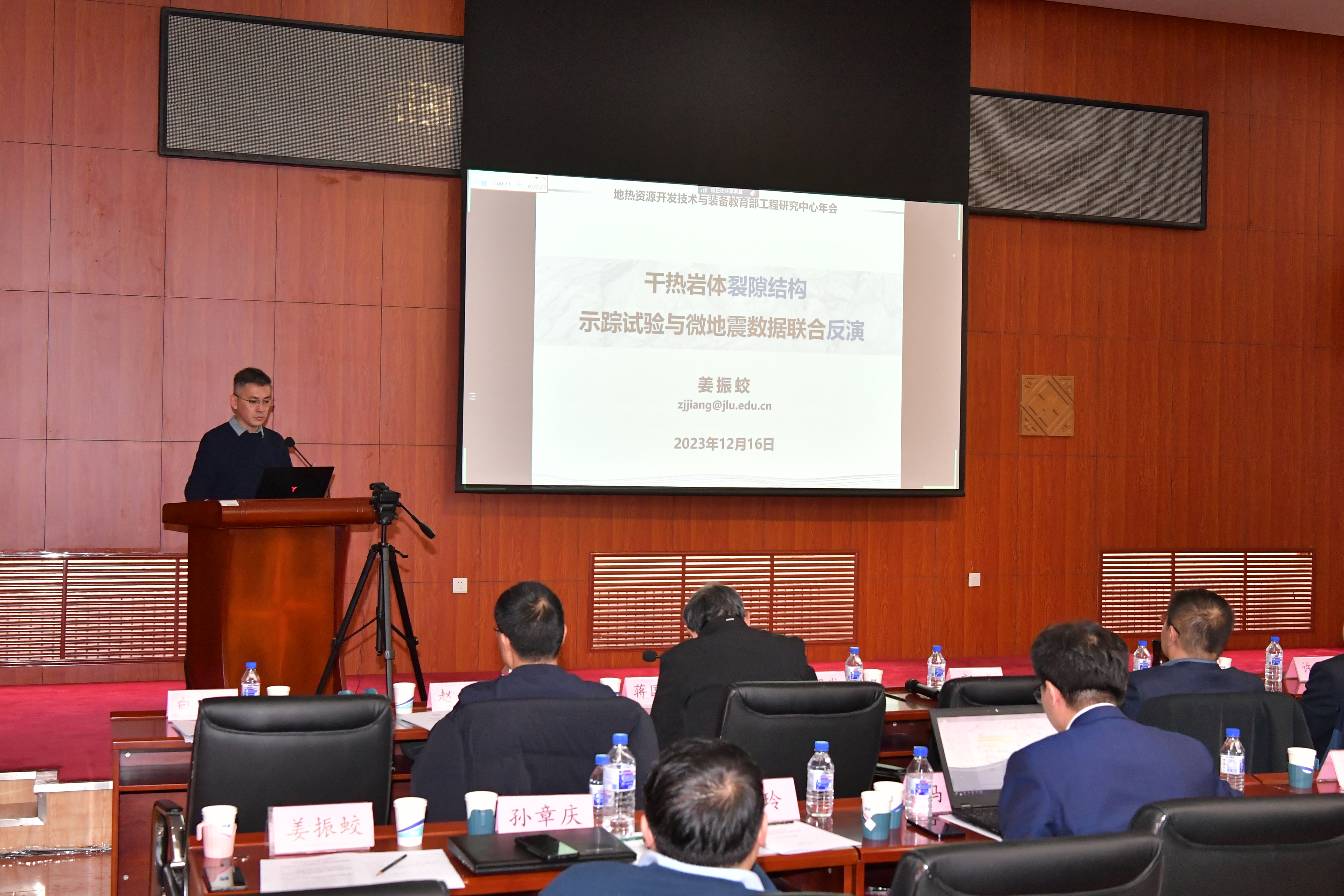 中心学术报告由新能源与环境公司经理、中心技术带头人许天福教授主持。围绕地热资源开发技术与装备,共有7个学术报告。王小清教授以上海市浅层地热能开发利用现状与关键技术为题进行了报告,姜振蛟教授以干热岩体裂隙结构示踪试验与微地震数据联合反演为题进行了报告,赵永哲研究员以中深层地热地埋管高效开发技术研究与应用为题进行了报告,赵容生教授以松辽盆地热结构特征基于对地热系统的控制作用为题进行了报告,庞营教授以地热资源勘探开发技术装备研究进展为题进行了报告,孙章庆教授以长三角区域地热资源评价与成因机理研究为题进行了报告,赵研教授以严寒地区自然冷能跨季利用技术研究进展为题进行了报告。