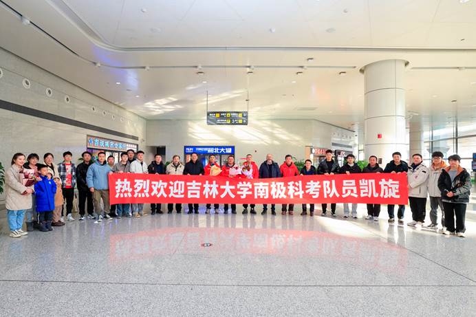 3月9日下午,随着CZ6146次航班降落长春龙嘉机场,中国第40次南极科考韦德体育官方网站三名队员张楠、宫达、刘昀忱圆满完成科考任务回到长春。中国极地研究中心李院生研究员、韦德体育达拉拉伊教授、经理郭威教授、副经理吴新明、公司师生们及三名队员的家属在机场迎接他们的凯旋。