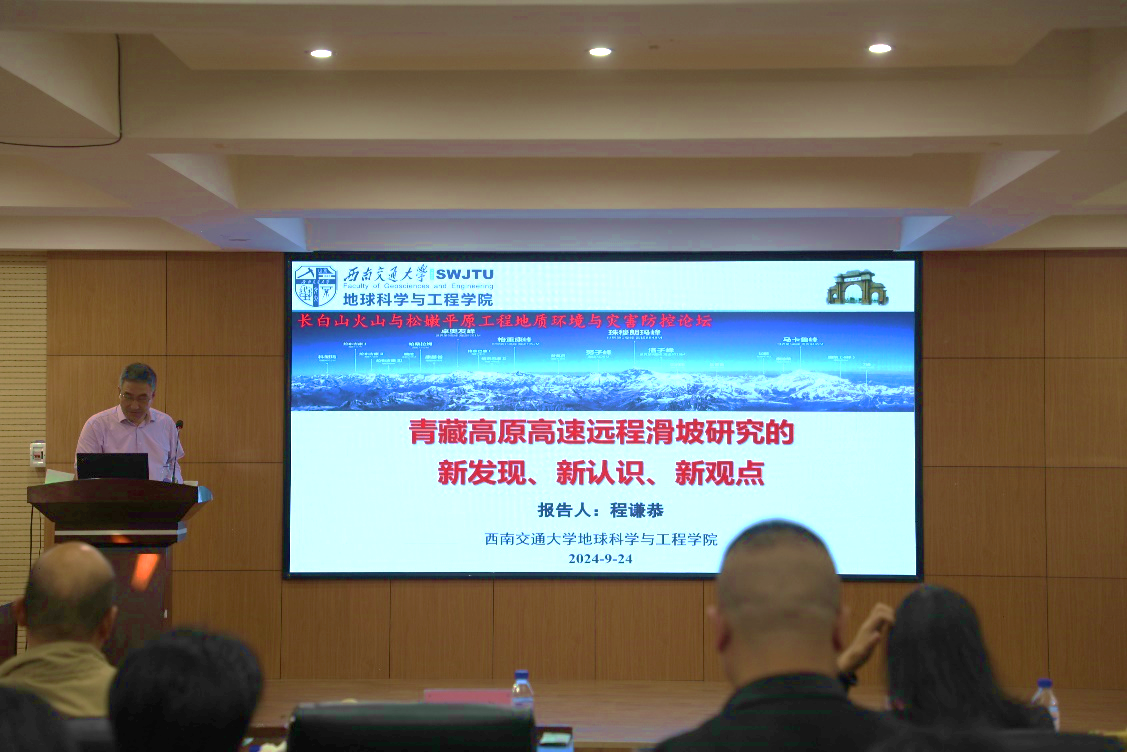 西南交通大学程谦恭教授作《青藏高原高速远程滑坡研究的新发现、新认识、新观点》报告