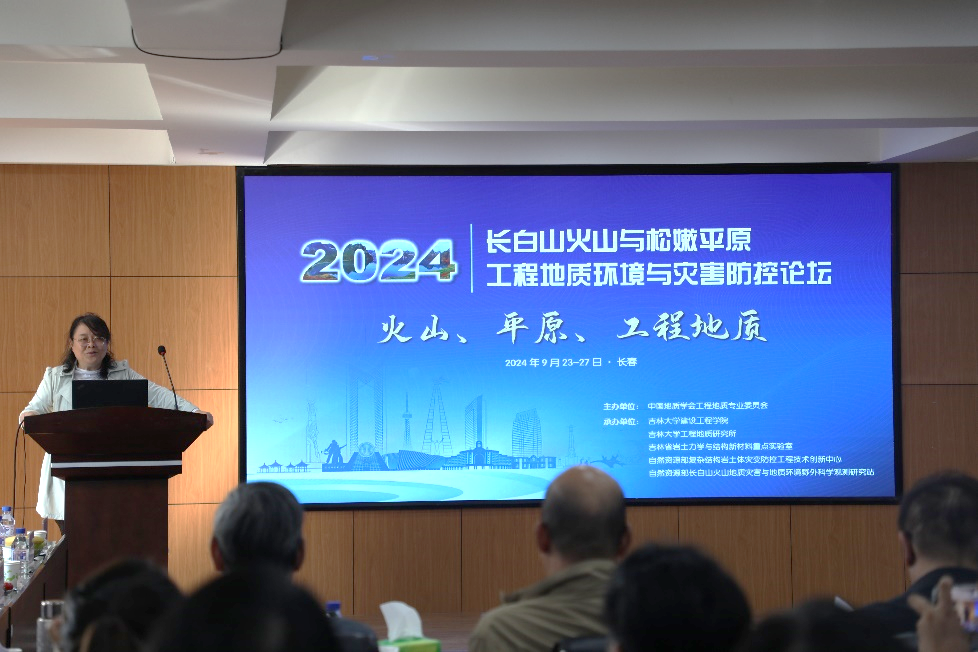 论坛报告由周翠英与胡新丽教授主持。各位与会专家针对工程地质前沿科学技术问题展开了深入交流与探讨,并围绕长白山火山、松嫩平原乃至东北地区工程地质灾害现象和地质环境演变规律进行了深入分析,为区域发展和防治减灾提出了宝贵意见。长白有约,松嫩可盼。灾害有疆,科学无界。祝贺本次论坛取得圆满成功!