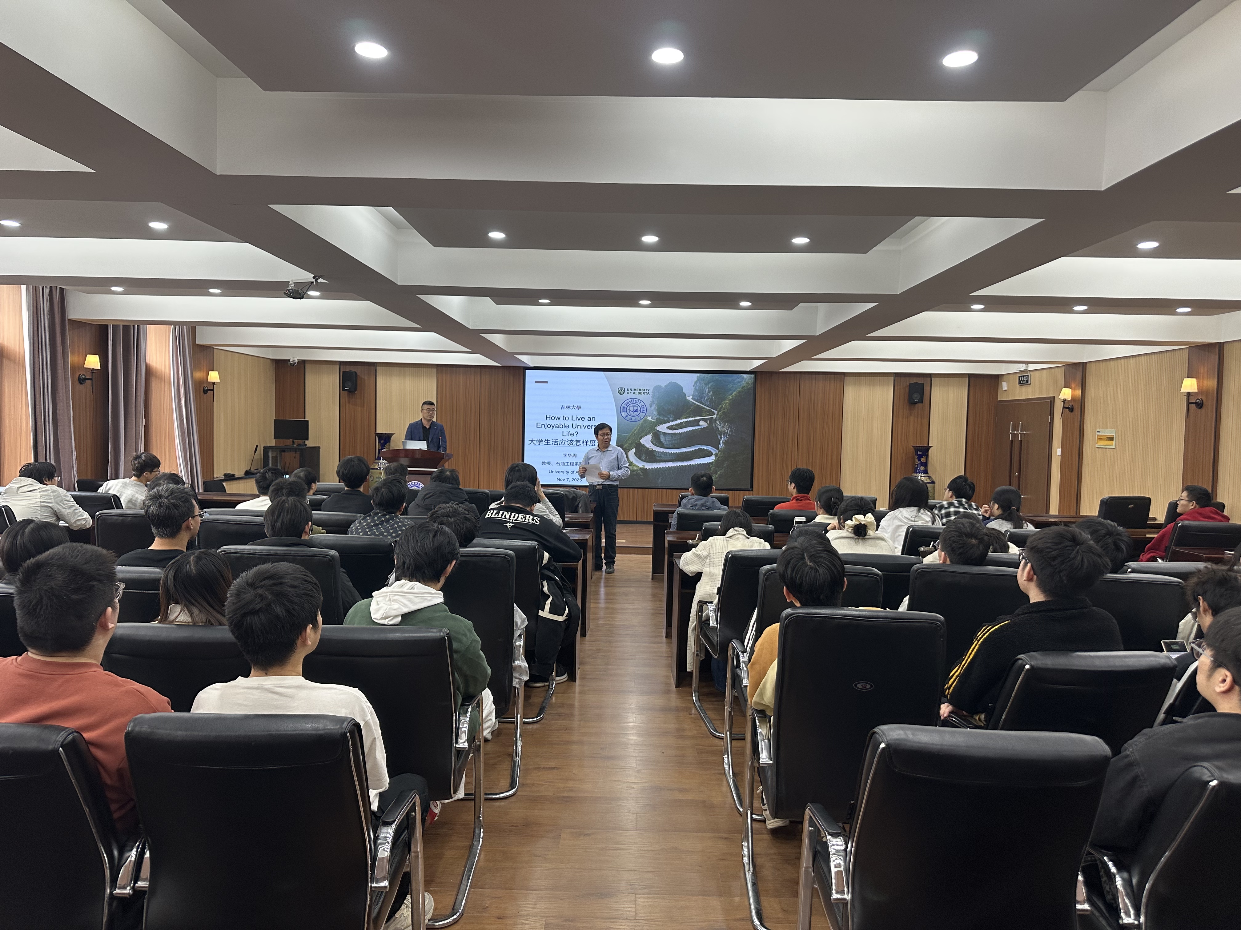 11月7日,韦德体育在水工楼325会议室举办了主题为“How to live a joyful university life”的讲座,此次讲座荣幸地邀请到加拿大阿尔伯塔大学终身教授李华周担任主讲嘉宾。他结合本人在加拿大学习与工作期间积累的宝贵经验,向在场同学分享了关于职业生涯规划、生活态度塑造及个人成长方面的独特见解。讲座由副经理博坤主持。