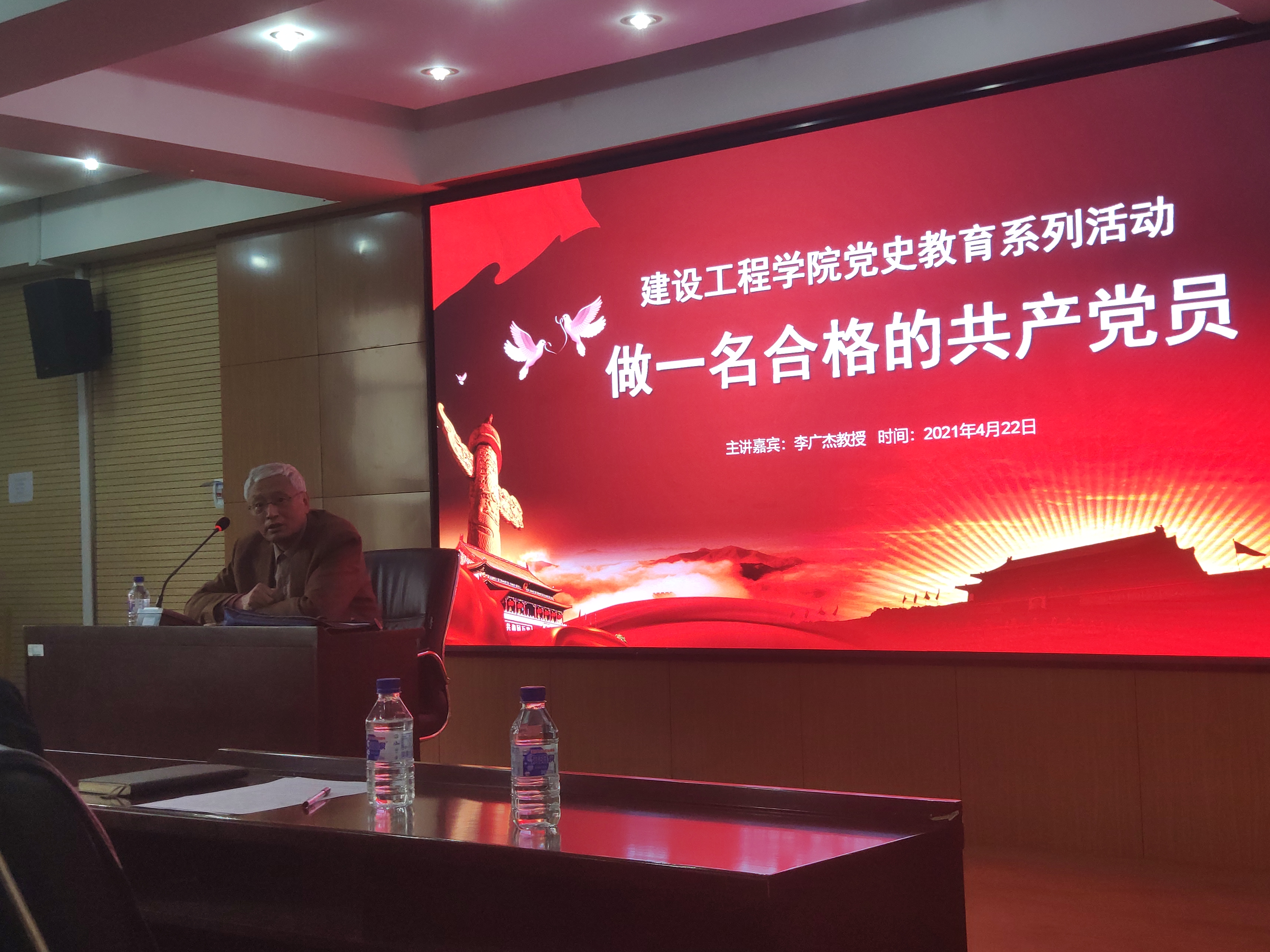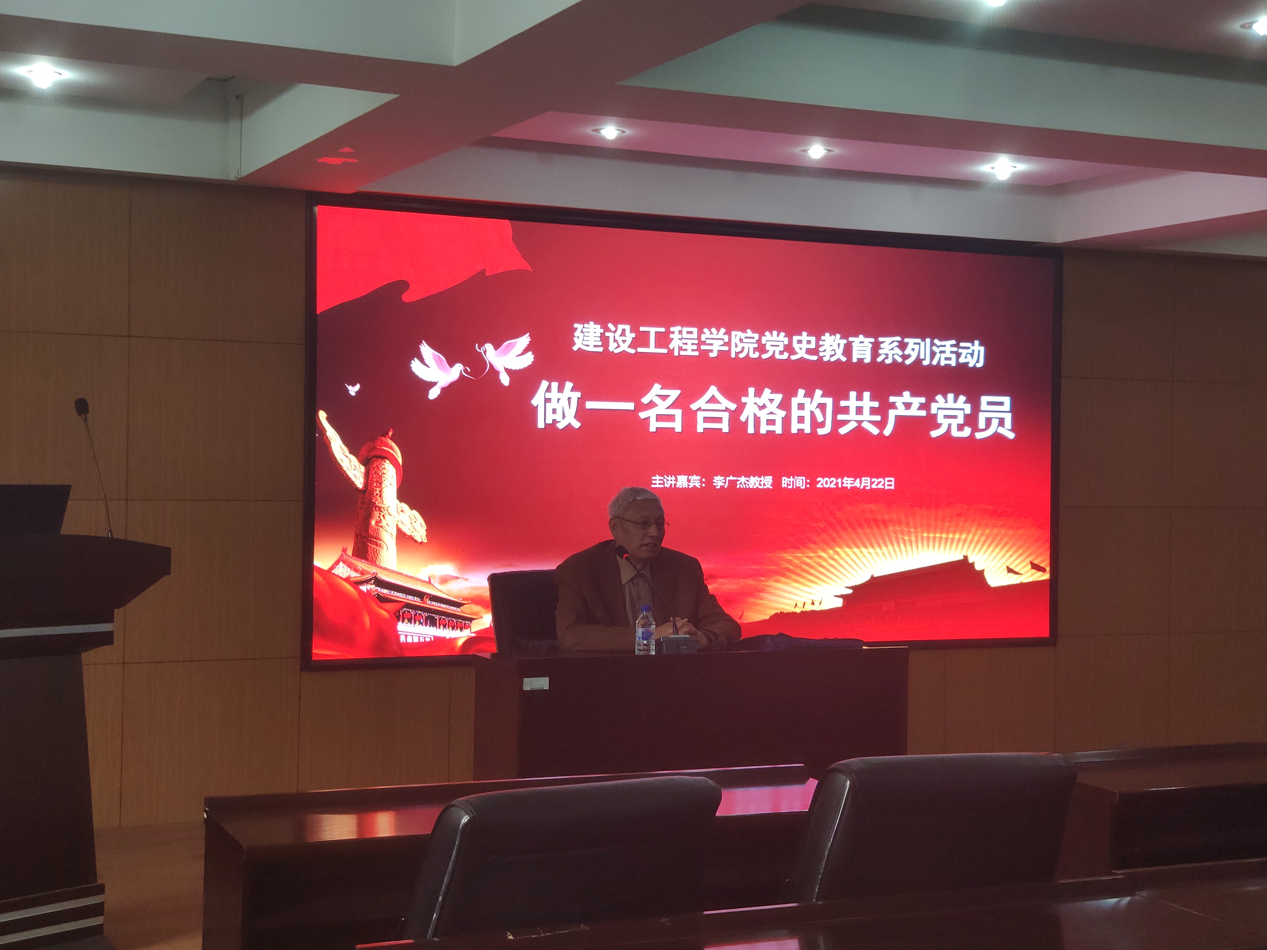 为扎实推进党史学习教育工作,提升员工党员和入党积极分子的党性修养,引导建工学子把个人理想和党的伟大事业紧紧联系在一起,韦德体育于4月23日下午13时40分在水工楼325报告厅开展党史学习教育活动,邀请了退休教师李广杰教授,为本科生党员和入党积极分子讲授《做一名合格的共产党员》专题党课。
