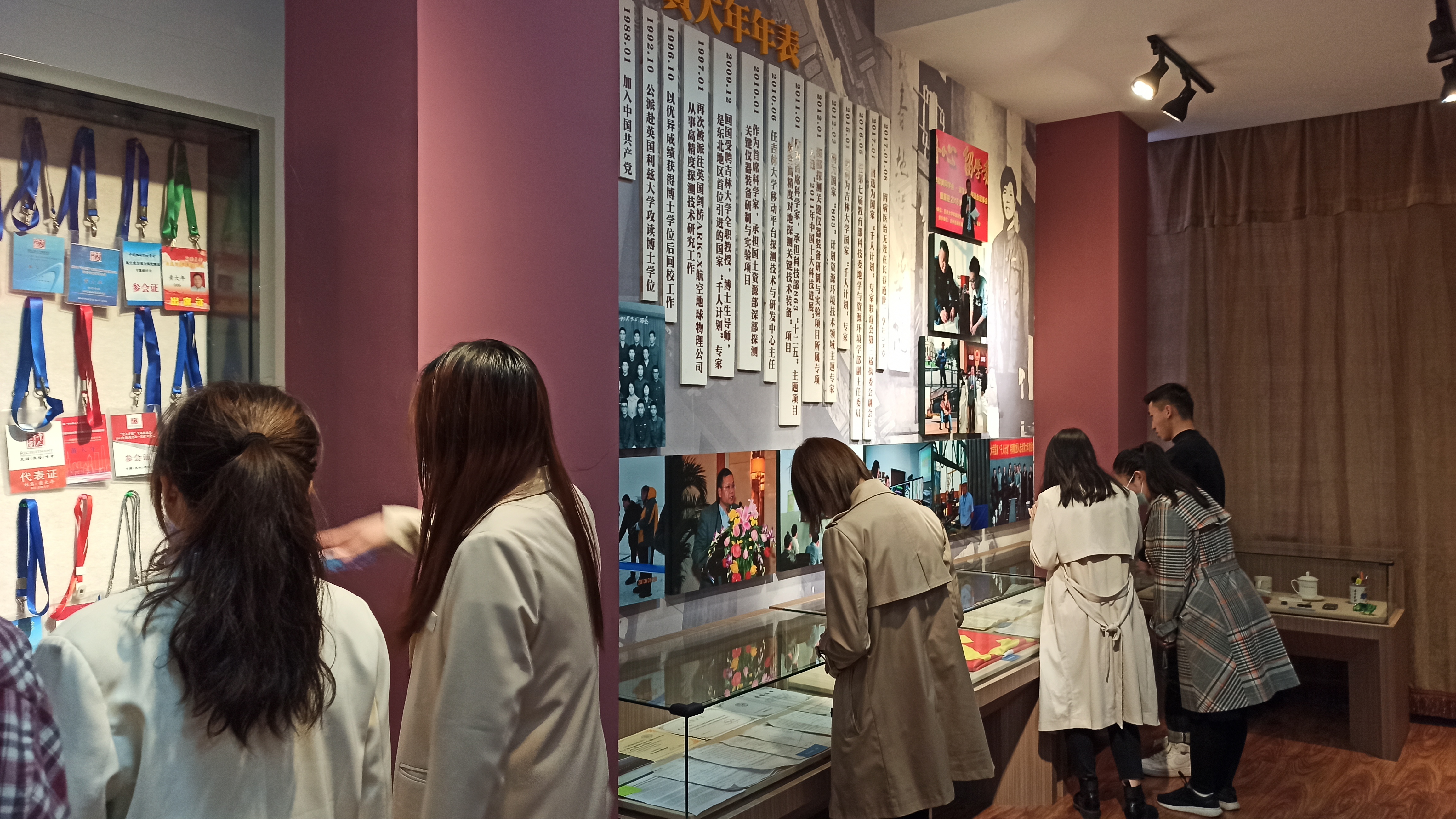 之后,大家来到黄大年生前用品展,馆内征集了黄大年教授生前学习、工作、生活方面的用品40余件,今天是首次开放,在里边我们看到了黄老师的硕士论文和博士论文以及在地质队工作时使用的罗盘、煤炉、照相机等等,在这里我们看到了一位地质青年逐渐成长为战略科学家的故事。最后,大家在馆外合影留念。