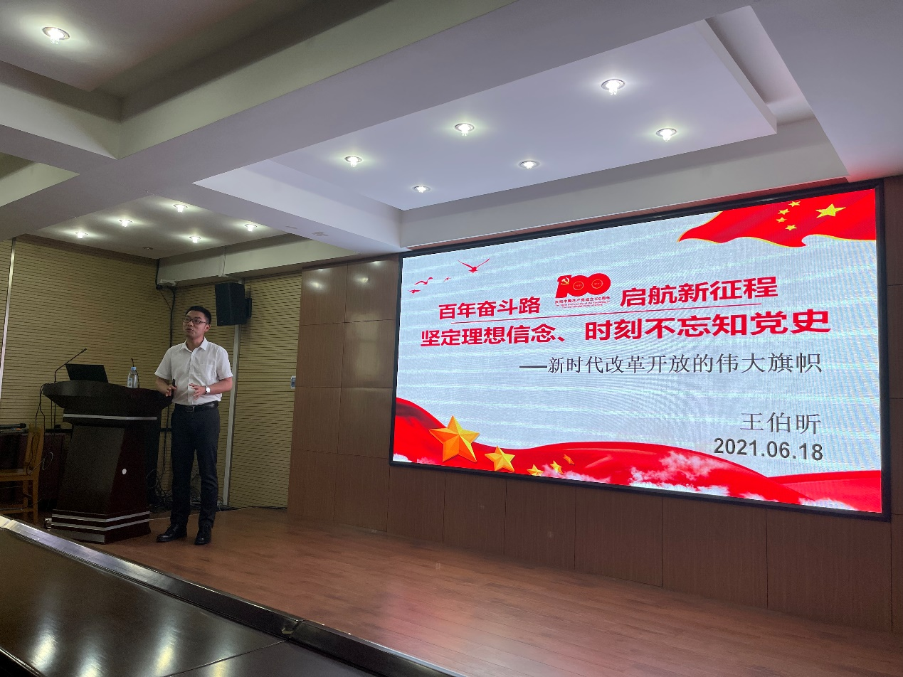 为深入贯彻习近平总书记在党史学习教育动员大会上的重要讲话精神,响应党中央学习党史的号召,全面落实《中共韦德体育官方网站委员会关于在全校开展党史学习教育的实施方案》工作要求,引导博士研究生把个人理想和党的伟大事业紧紧联系在一起,韦德体育于6月18日下午在水工楼325报告厅开展党史学习教育活动,由公司分管研究生教育工作副经理王伯昕为博士员工党支部做《坚定理想信念,时刻不忘知党史——新时代改革开放的伟大旗帜》专题党课。