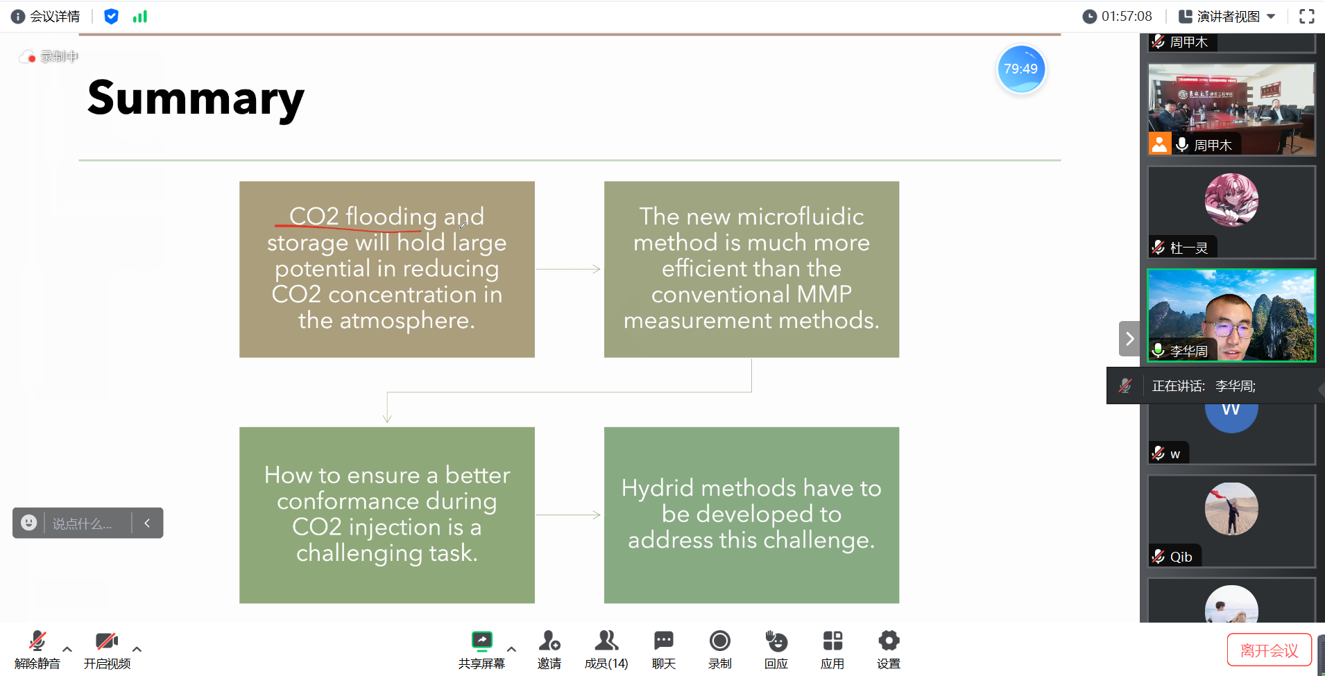 2023年11月16日,加拿大阿尔伯塔大学终身教授Li Huahzou受邀以《CO2 Capture and Storage: Development Status and outlook》为题为韦德体育师生开展线上学术讲座。公司副经理曹品鲁教授主持了本场讲座,包括勘查工程系主任刘宝昌教授在内的公司近30名中青年教师、博士研究生和硕士研究生代表参加了本场讲座报告会。