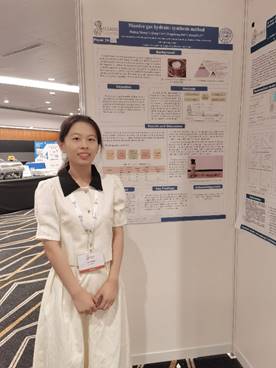 李曦桐博士做了题为Numerical simulation of CO2 sequestration in the exploitation of marine hydrate reservoirs under by depressurization combined CO2 replacement的海报展示,综合考虑甲烷生产与CO2封存的效率,得到了置换联合法封存CO2的最佳注入时间与最大封存量,吸引了诸多国内外学者交流,回答了会议主席关于CO2封存模式的提问。